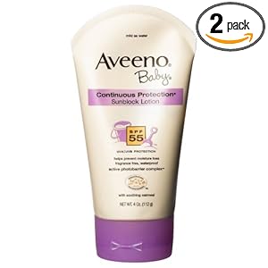I got a 2-pack of Aveeno Baby Continual Protection Sunscreen (SPF-55) - which is waterproof and fragrance-free - virtually impossible to find in sunscreen! - for only $12.89. That's $6.45 each - considering this retails for nearly $9 per bottle and sunscreen isn't optional, I'm happy with that!